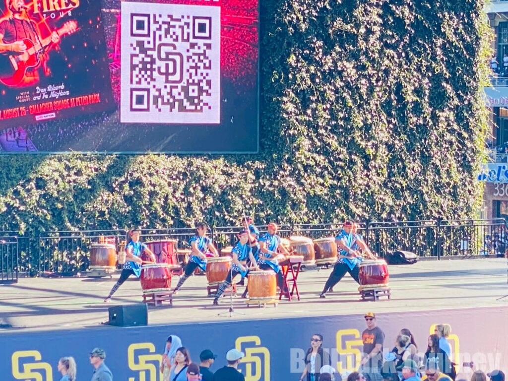 私たちが訪れた時はちょうどJapanese Heritage Nightで、試合前には和太鼓グループが演奏していて、まるでお祭りに来たようでした。