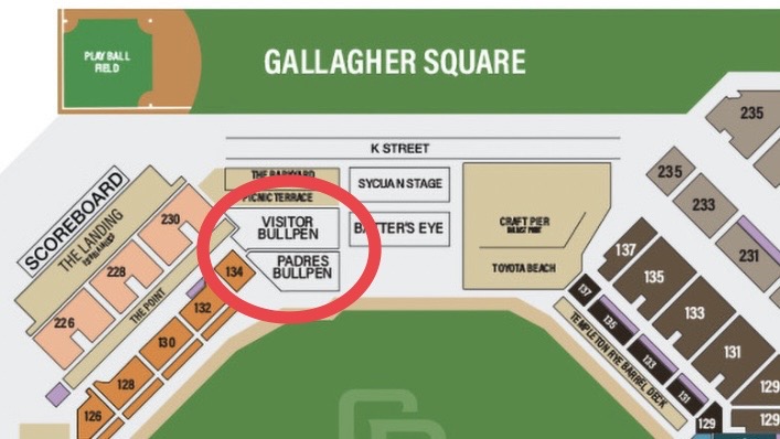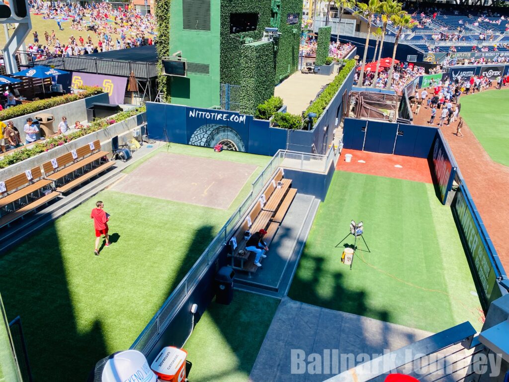 ペトコパークのブルペンはレフト後方に両チーム並んであります。