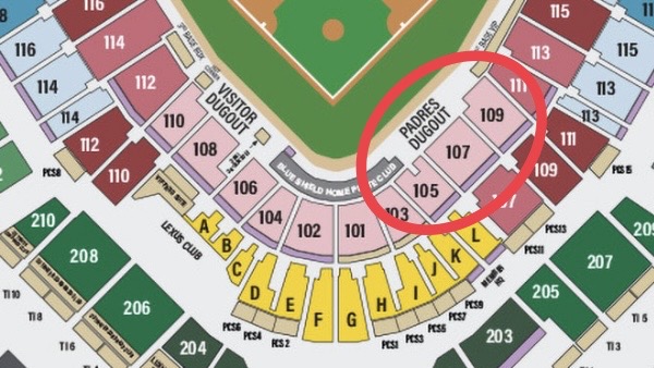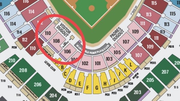 せっかく球場まで足を運んだからにはお気に入りの選手を間近で見たい!という方は、パドレスの選手を近くで見たいなら1塁側ベンチ付近の座席がおすすめです。